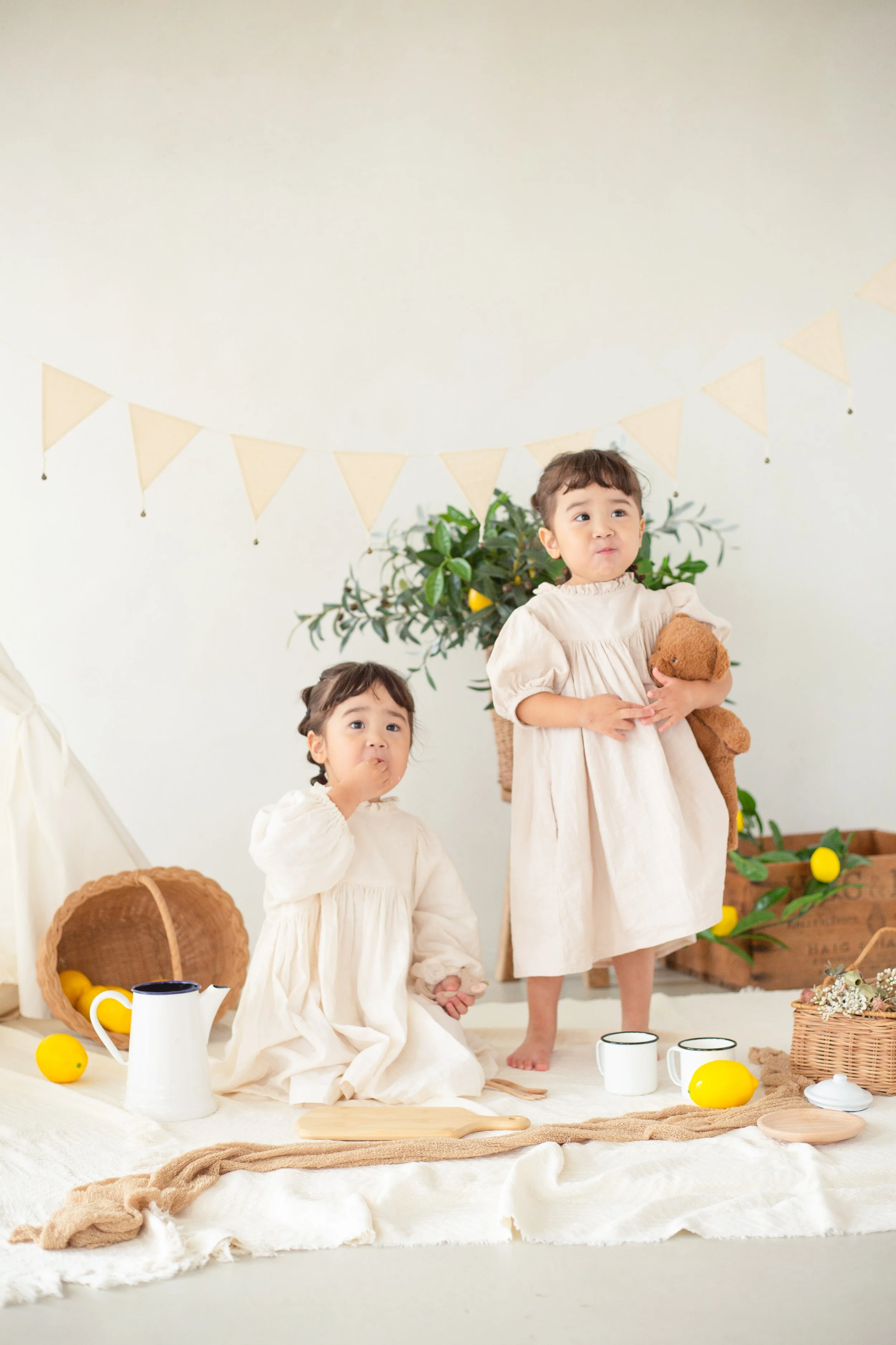 ティピーやバスケット、レモンに囲まれたピクニック空間。