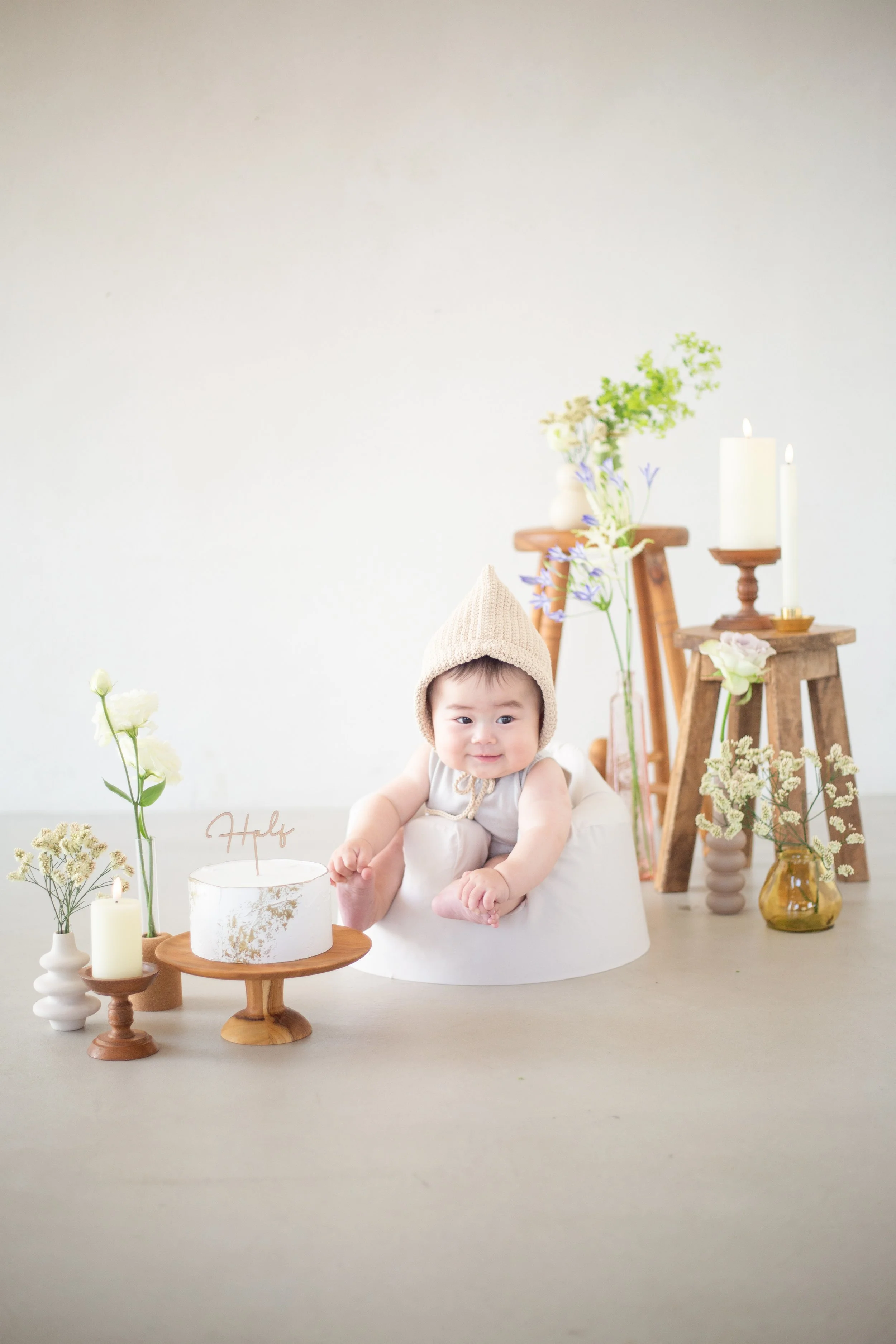 ミニテーブルにキャンドルやケーキを飾って、お誕生日らしい写真が残せます。